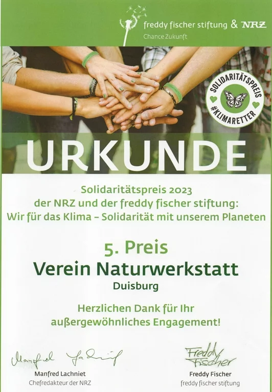 - 2023 mit dem dem "Solidaritätspreis der" Freddy Fischer Stiftung und der NRZ