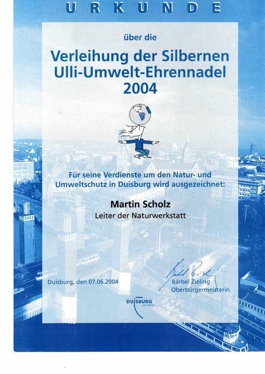 - 2004 "Silberne Umwelt-Ehrennadel" durch die Oberbürgermeisterin Bärbel Zieling „Für Verdienste um den Natur- und Umweltschutz in Duisburg.“